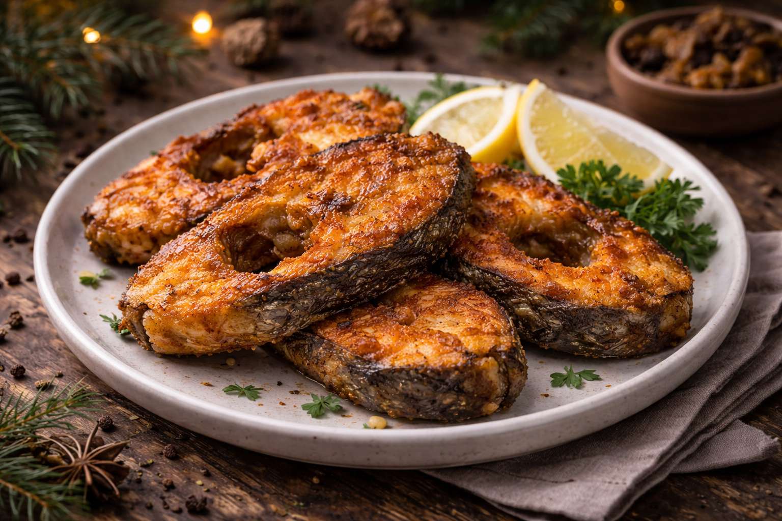 La carpe frite est le poisson de Noël par excellence en Pologne. Coupée en darnes ou en filets, enrobée de farine ou de chapelure, puis frite jusqu’à devenir dorée, elle occupe une place centrale sur la table. Même si elle divise parfois les opinions, sa présence reste profondément ancrée dans la tradition.