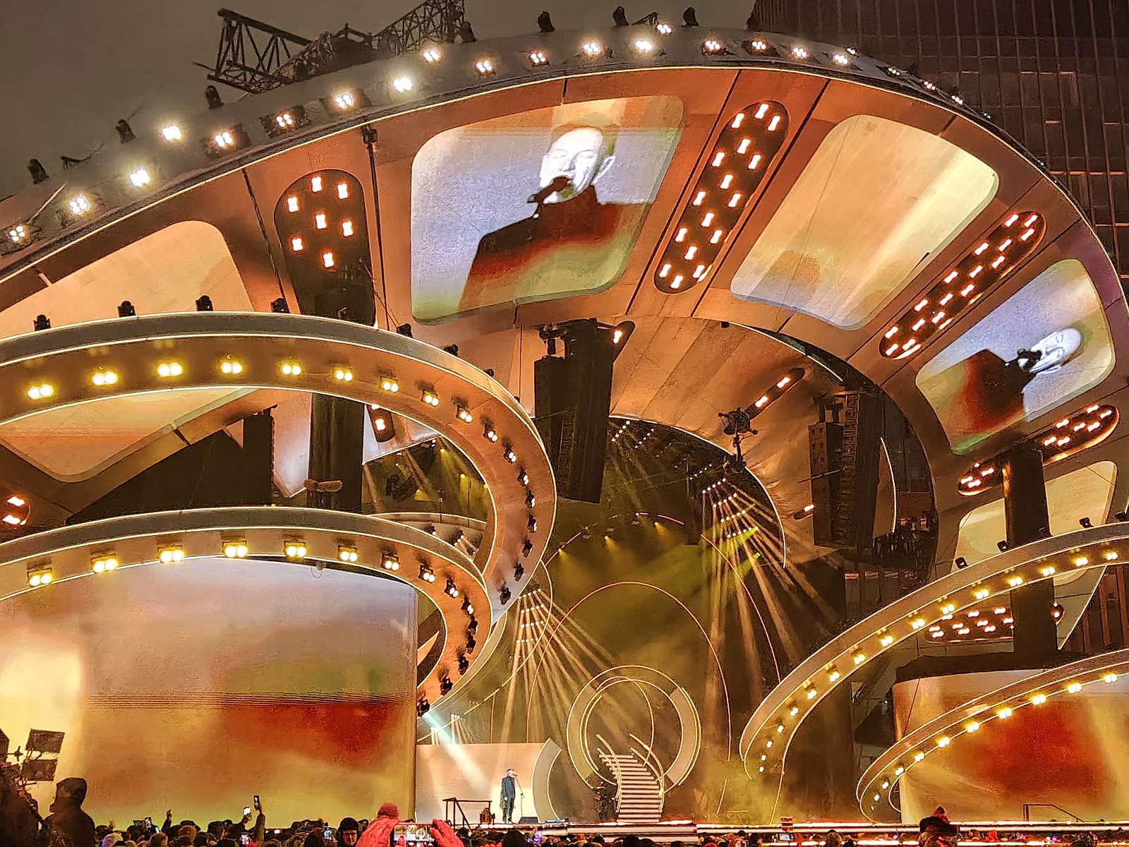 Le concert s’est déroulé sur la place Henryka Sławika et Józefa Antalla, devant le Spodek — un lieu iconique de Katowice, reconnaissable à sa forme “soucoupe volante”. La presse locale a rappelé l’emplacement exact et le format : un grand événement en extérieur, au pied de l’arène la plus célèbre de la ville.